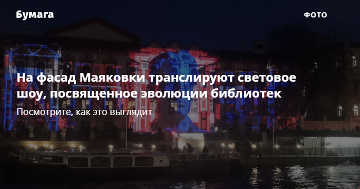 На фасад Маяковки транслируют световое шоу, посвященное эволюции библиотек
