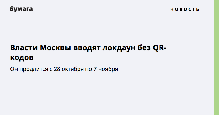 Власти Москвы вводят локдаун без QR-кодов