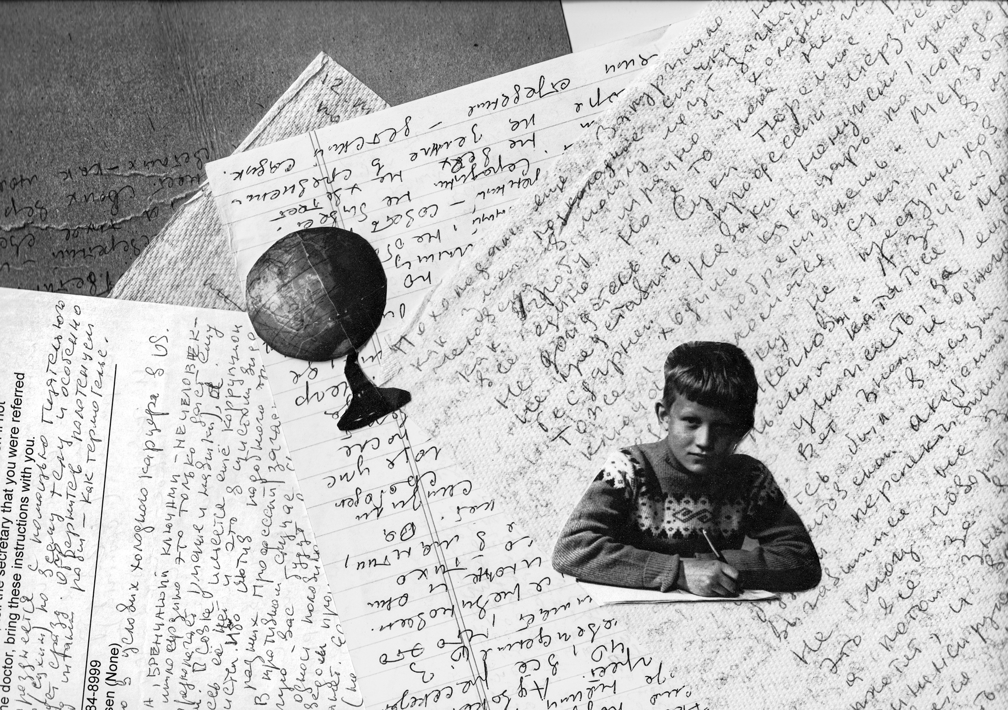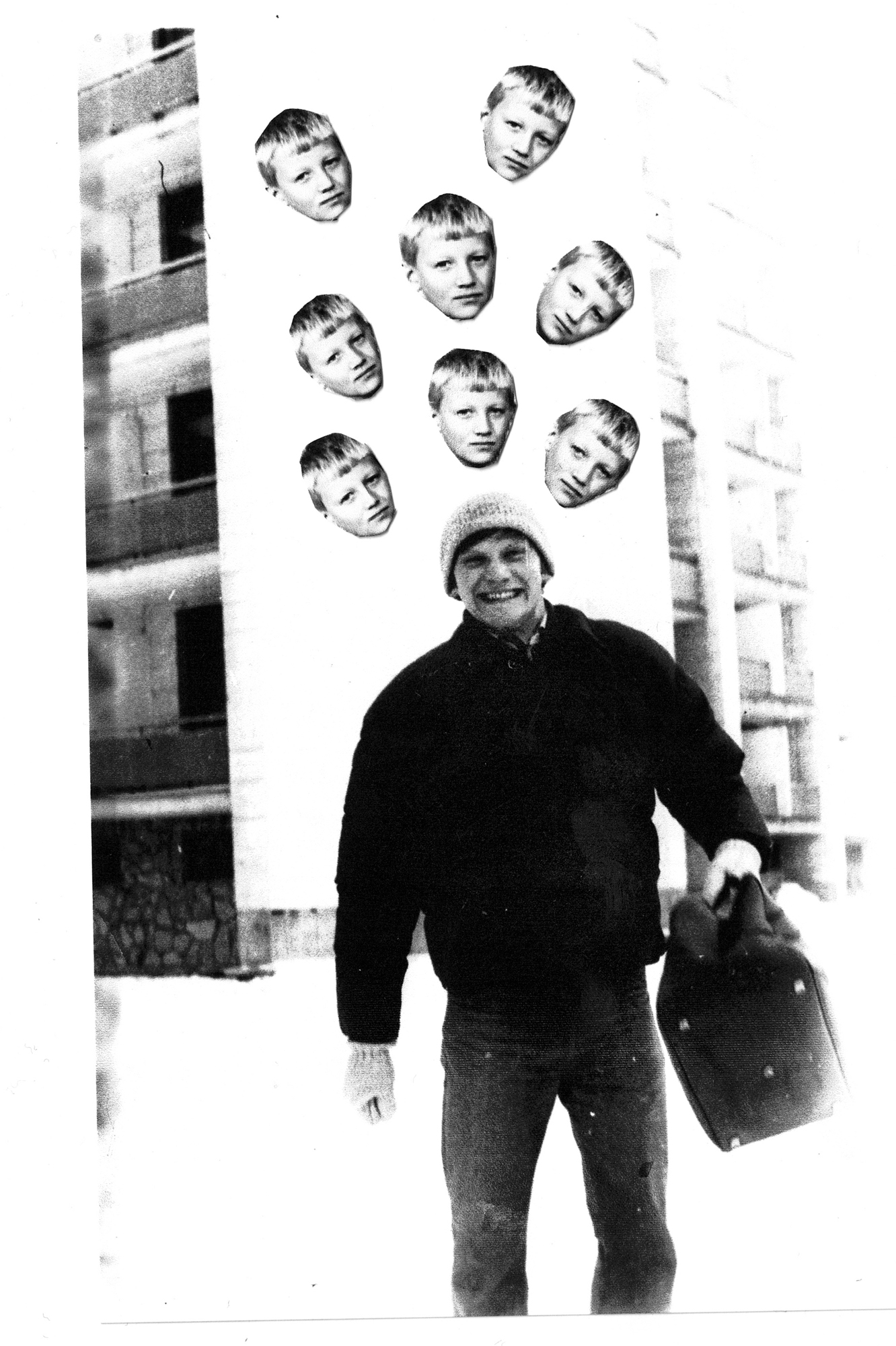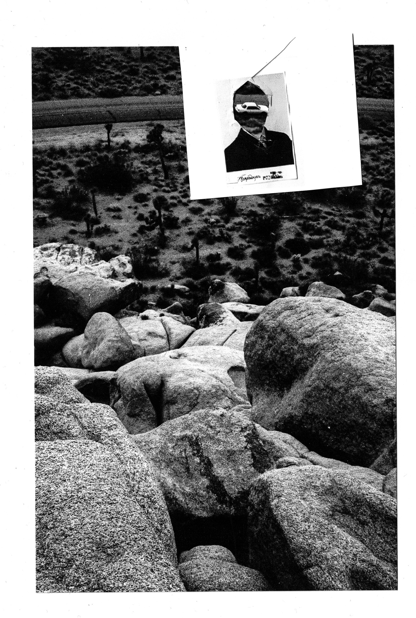 Дорожная фотография из архива папы и его школьный портрет с вырезанным лицом как символ неизбежности, предопределенности его судьбы