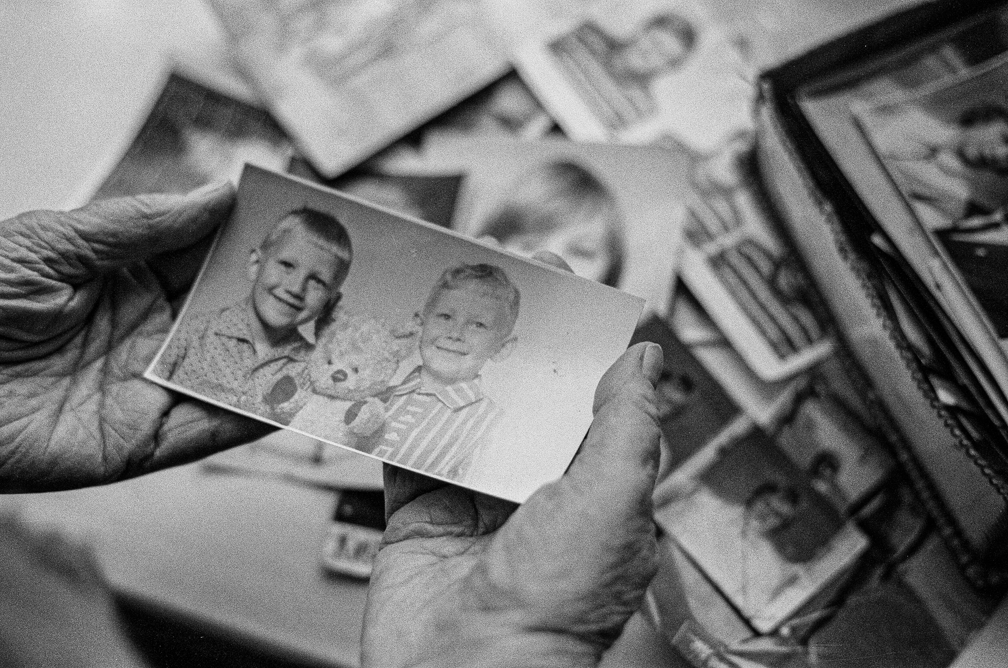 Бабушка перебирает архив с детскими фото отца
