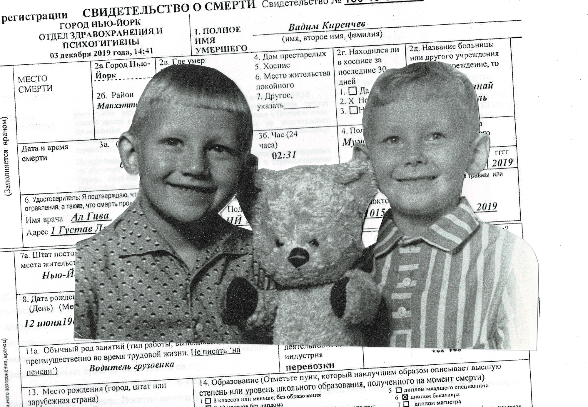 Репатриация из Нью-Йорка в Санкт-Петербург заняла двенадцать дней. Тело отца долго не могли вывезти из-за того, что его свидетельство о рождении было утеряно