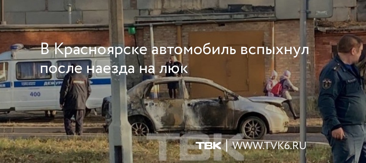 В Красноярске автомобиль вспыхнул после наезда на люк