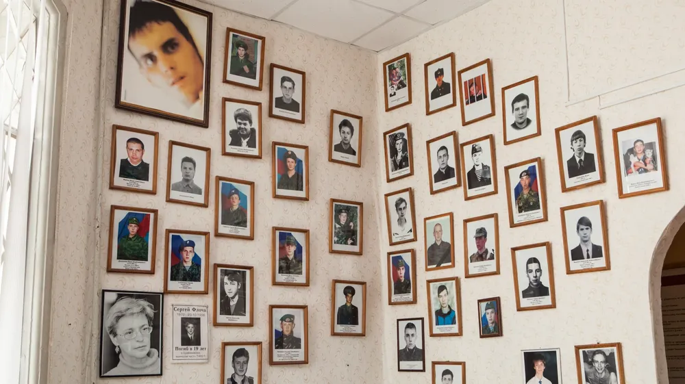 Среди фотографий есть одна, которая не висит в рамке, поэтому сильно выделяется. На ней — совсем юный мальчик Сергей Флоча, который в 1998 году погиб в мотострелковой воинской части в Буденновске, будучи 19-летним. Из-за того, что более поздних фотографий парня не сохранилось, на той фотографии, что висит на стене, ему лет 13. Также на стене можно заметить черно-белую фотографию спецкора «Новой» Анны Политковской. По словам пресс-секретаря «Солдатских матерей» Кирилла Куценко, она оказалась здесь, потому что была одним из немногих журналистов, которые рассказывали правду о чеченских событиях. Здесь висел и портрет убитой чеченской правозащитницы, журналистки Натальи Эстемировой, однако сейчас его забрала 76-летняя художница-активистка Елена Осипова, чтобы срисовать его для плаката — Осипова проводит одиночные пикеты.