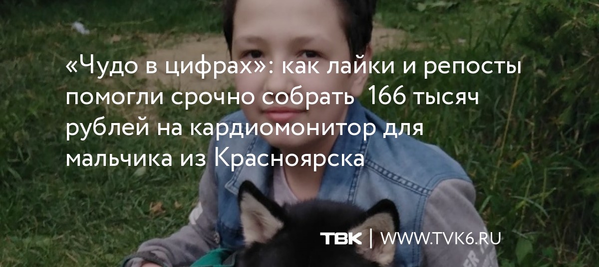 «Чудо в цифрах»: как лайки и репосты помогли срочно собрать 166 тысяч рублей на кардиомонитор для мальчика из Красноярска