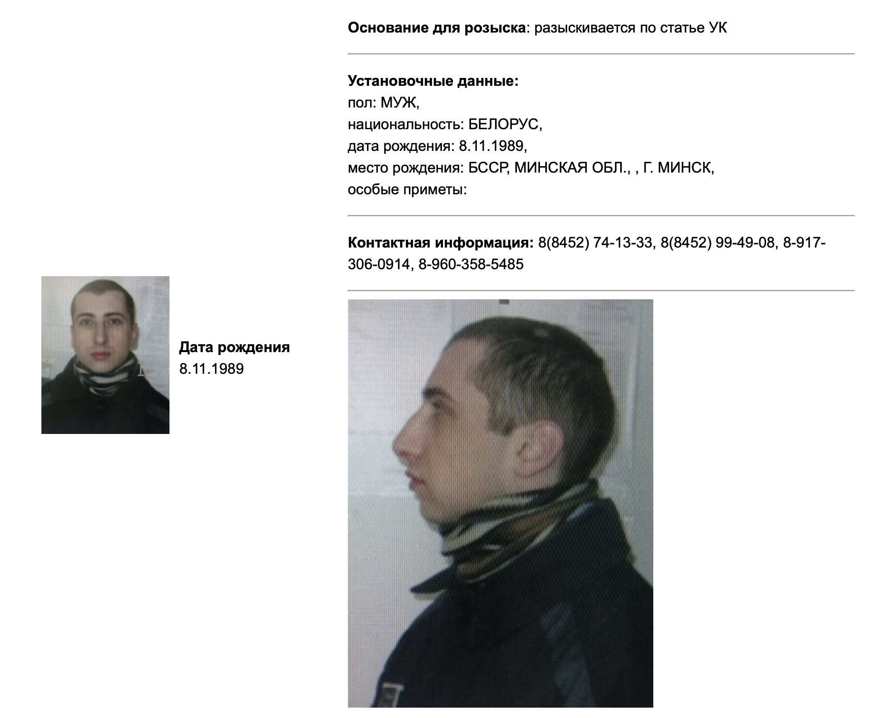 В базе говорится, что 31-летнего Савельева разыскивают по уголовному делу; подробности не приводятся.