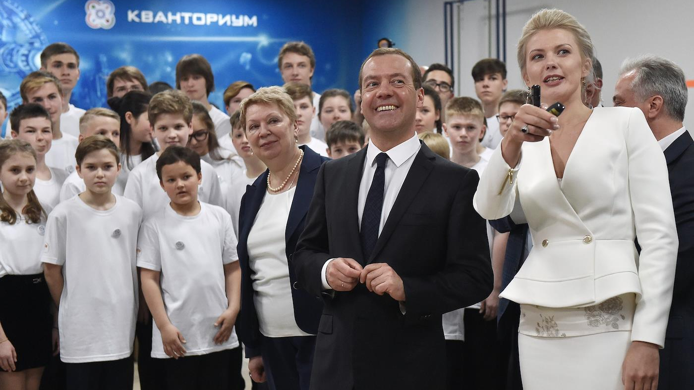 Бывшая министр образования Ольга Васильева, ее заместитель Марина Ракова и премьер Дмитрий Медведев. Фото: ТАСС