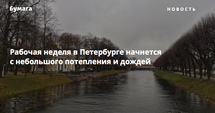 Рабочая неделя в Петербурге начнется с небольшого потепления и дождей 🌧