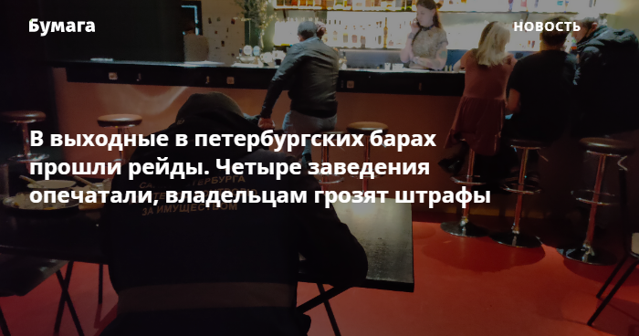 В выходные власти провели в петербургских заведения рейды и проверили соблюдение санитарных правил. Как сообщили в пресс-службе Смольного, четыре заведения опечатали, владельцам семи предприятий грозят штрафы.