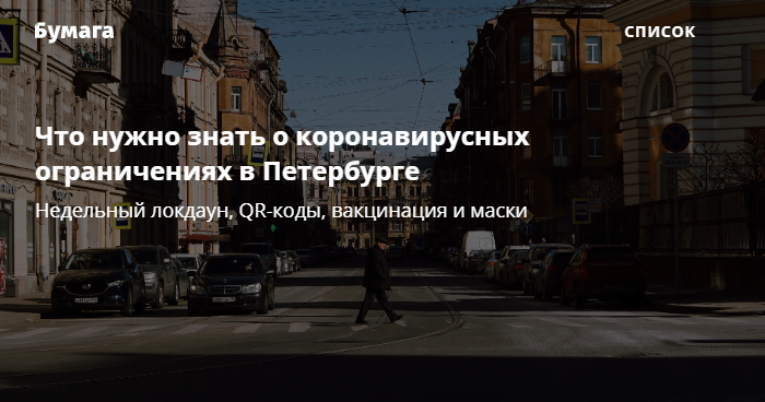 Недельный локдаун, вход в рестораны по QR-кодам, обязательная вакцинация и усиленный контроль за ношением масок в метро. «Бумага» рассказывает о главных коронавирусных ограничениях в Петербурге, которые уже вступили в силу или скоро будут введены.
