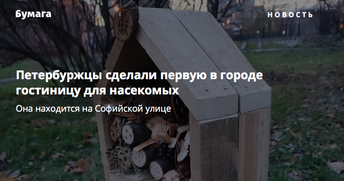 Петербуржцы сделали первую в городе гостиницу для насекомых