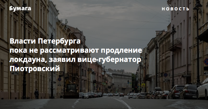Власти Петербурга пока не рассматривают продление локдауна, заявил вице-губернатор Пиотровский