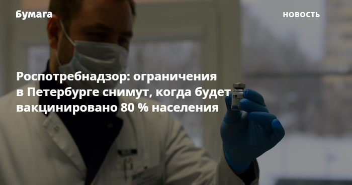 Роспотребнадзор: ограничения в Петербурге снимут, когда будет вакцинировано 80 % населения