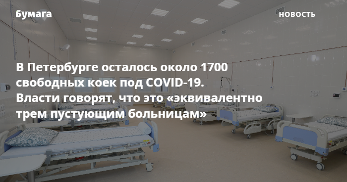 Расширение коечного фонда в ближайшее время не планируется, сказали «Бумаге» в комитете по здравоохранению Петербурга. «Это [около 1700] большое количество свободных коек. Эквивалентно трем пустующим больницам», — заявили в пресс-службе комитета.