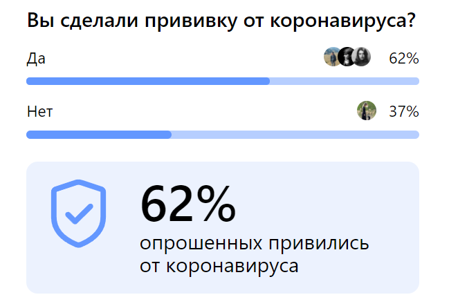 «Коллективный иммунитет» показывает, кто из ваших друзей сделал прививку. В список вакцинированных попадают люди, которые прошли опрос в самом сервисе или установили эмодзи-статус с галочкой о вакцинации в мини-приложении «Коронавирус».