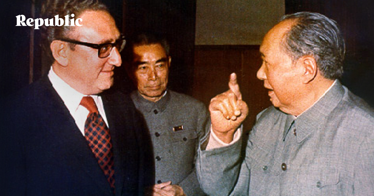 Генри Киссинджер и Мао Цзэдун, на заднем плане — Чжоу Эньлай. Пекин,10 июля 1971 года. Фото: wikipedia.org