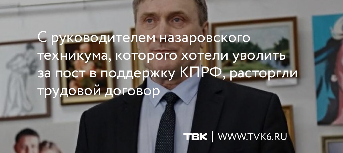 С руководителем назаровского техникума, которого хотели уволить за пост в поддержку КПРФ, расторгли трудовой договор