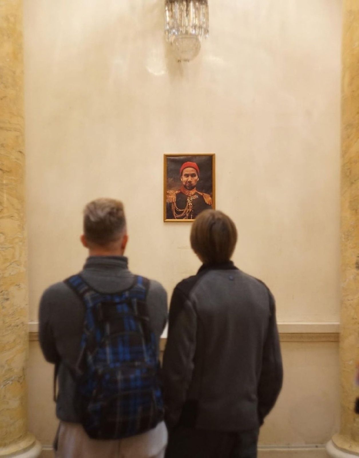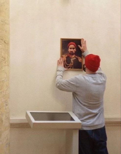 В посте Смородин написал, что прогуливался по Эрмитажу, а потом подумал: «а почему здесь нет моего портрета?» Тогда он решил повесить на стену музея свое изображение в мундире.