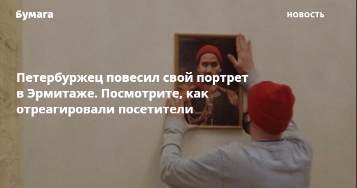 Петербуржец повесил свой портрет в Эрмитаже. Посмотрите, как отреагировали посетители. Обновлено