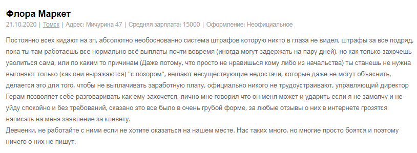 В интернете практически по первому запросу можно найти отзывы на работу в «Flora Market».