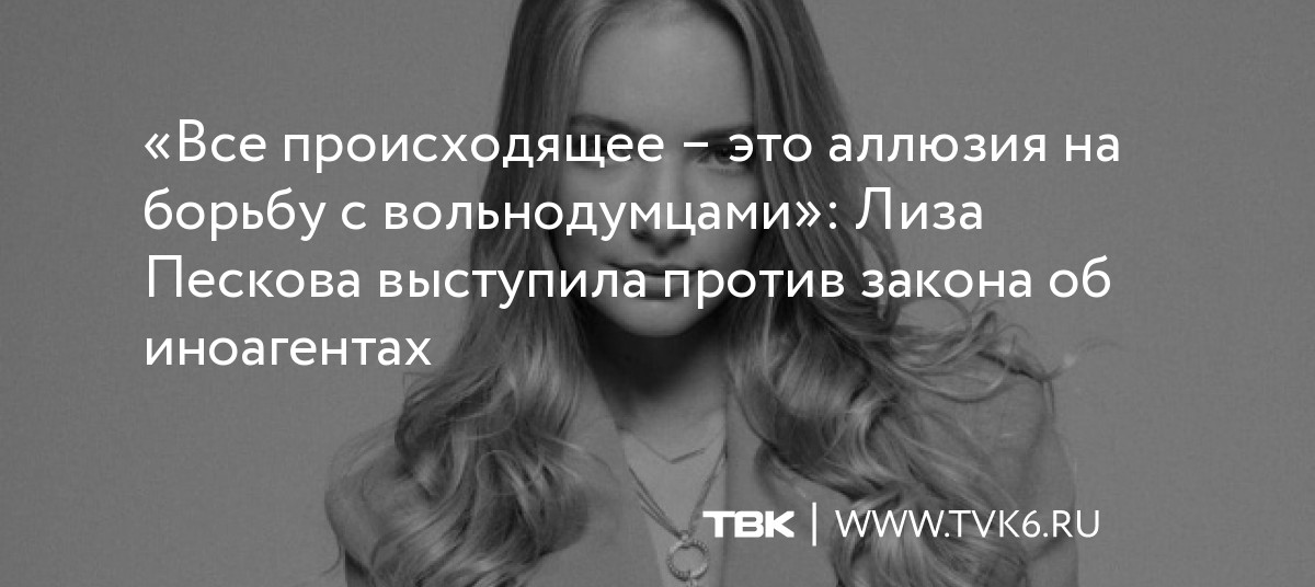 «Все происходящее – это аллюзия на борьбу с вольнодумцами»: Лиза Пескова выступила против закона об иноагентах