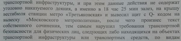 В Москве задержали акциониста Марлена Чтчяна, который произнес речь на крыше вестибюля станции метро «Третьяковская» и вывесил табличку с QR-кодом. Об этом он сам сообщил ОВД-Инфо.