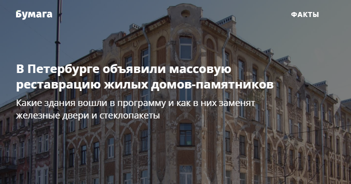 Что известно о реставрацию жилых домов-памятников в Петербурге