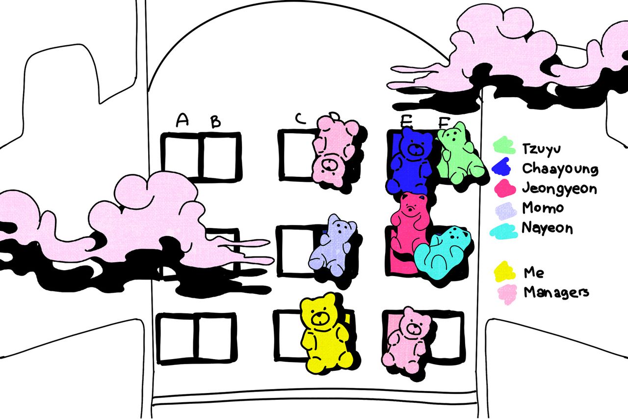 На обратный рейс Джош купил билет в бизнес-класс: он знал, что TWICE полетят им же. Со своего места в последнем ряду у него был хороший обзор. Поначалу Джош не знал, где сидит Наён. Он видел в салоне других участниц и менеджеров группы, но не её. Вдруг он услышал её смех. Оказалось, что Наён сидит буквально в соседнем ряду у окна. В первый и последний раз за все эти годы Джош оказался так близко к своей цели.