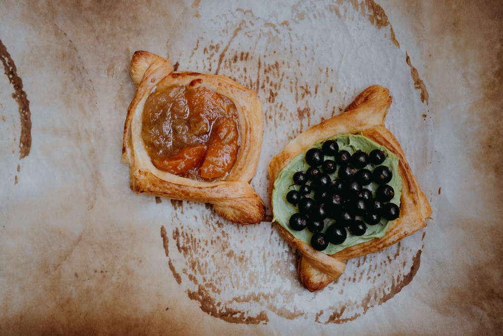 Пирожное в виде чашечек из слоеного теста с заварным кремом