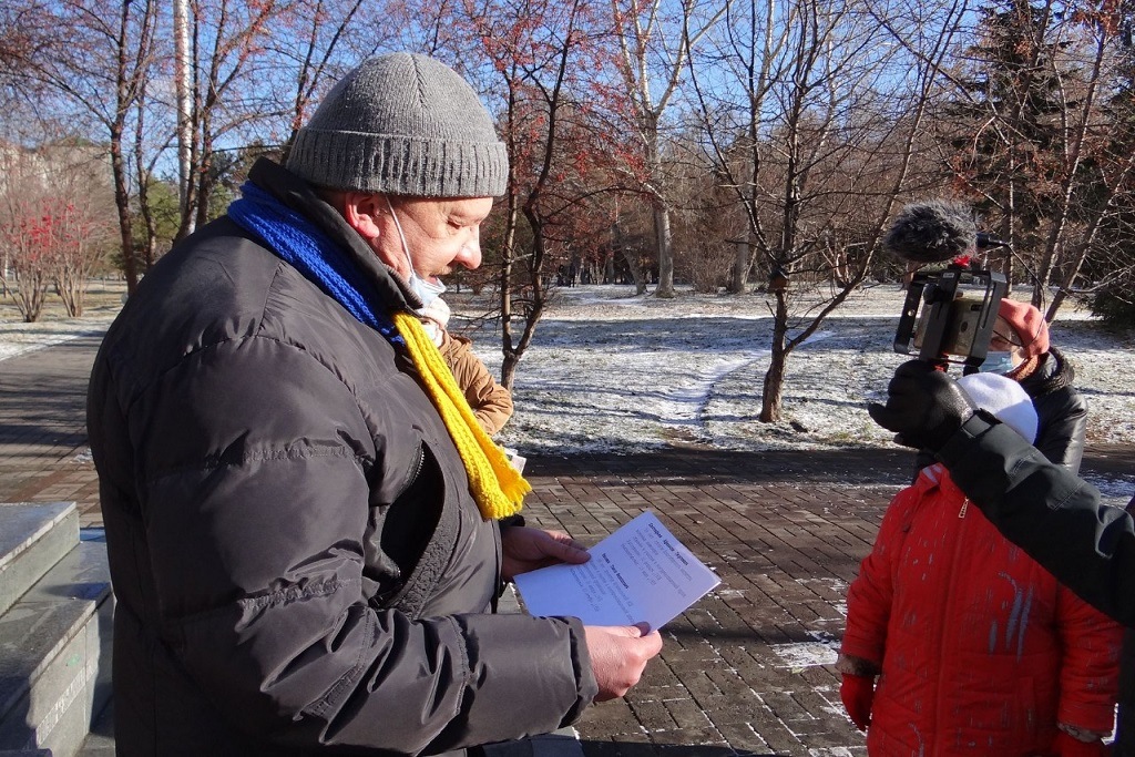 Участники акции зачитали имена репрессированных из книги памяти региона. По словам журналиста, мероприятие было непродолжительным.