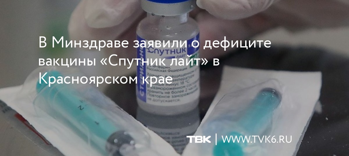 В Минздраве «ТВК Красноярск» сообщили, что такие ограничения связаны с дефицитом однокомпонентной вакцины. В ведомстве не назвали точные цифры, однако отметили, что «Спутника лайт» в Красноярске осталось немного, и в ближайшие 5 дней его в город не привезут. При этом обычный «Спутник V» есть везде и с запасом.«Спутник лайт» нужно ставить только один раз, QR-код приходит уже на следующий день, поэтому на эту вакцину был большой спрос. Тем не менее, медики отказывали людям и поясняли – «Спутник лайт» они ставят только тем, кто пришел на ревакцинацию.