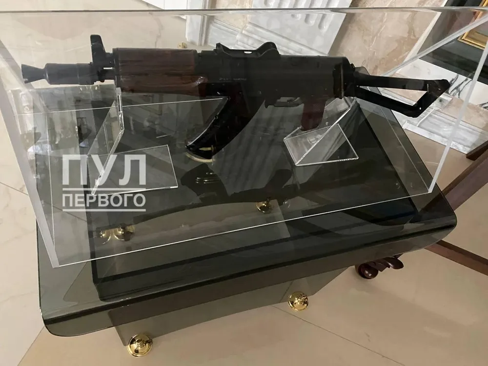 Во Дворце независимости в Минске в качестве экспоната выставили автомат, с которым Александр Лукашенко летал на вертолете 23 августа, когда в Беларуси проходили массовые протесты. Фотографии экспозиции опубликовал телеграм-канал «Пул Первого».