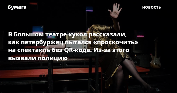 Вечером 30 октября петербуржец без QR-кода пытался попасть на спектакль «Летов. Дурачок» в Большом театре кукол. В итоге пришлось вызывать полицию. Подробности рассказали «Бумаге» представители театра.