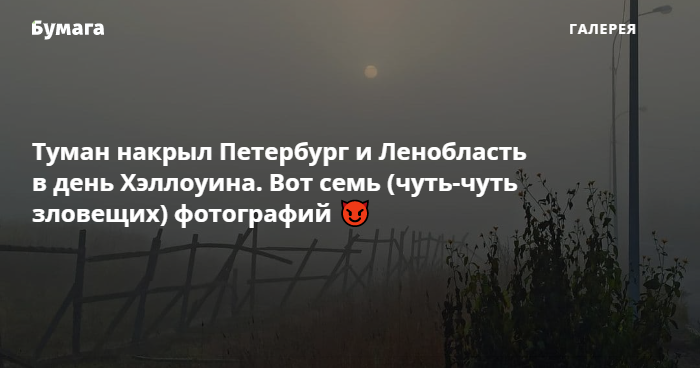 Утром 31 октября — а этот день Хэллоуина — туман накрыл некоторые районы Петербурга и Ленобласти. «Бумага» собрала семь фотографий с дымкой из соцсетей.