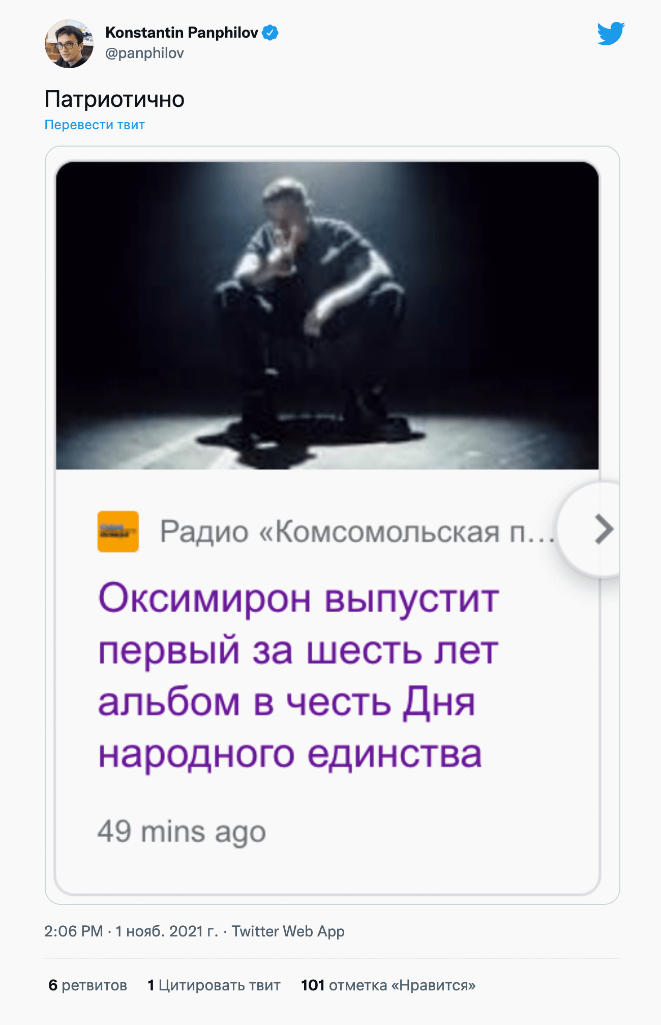 Фрагменты этой надписи уже стоят на сайте с картой рекламных баннеров и на аватарке Оксимирона. Возникает новая теория: альбом, если отталкиваться от закрепленного твита, выпустят уже 5 ноября. Это пятница, а именно по пятницам на стриминговых сервисах выходят альбомы.