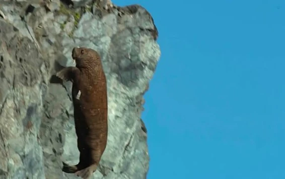 И что вы думаете? Это была святая правда. Моржи со скал действительно падали. Это было на Чукотке в 2017 году возле села Рыркайпий. Падали они потому, что бежали от белых медведей. Моржи так размножились, что поголовье их достигло 5000 особей, лежбище разрослось, моржи стали забираться на скалы. Это привлекло 20 (!) штук белых медведей, и бедные моржи в панике прыгали со скал и разбивались.