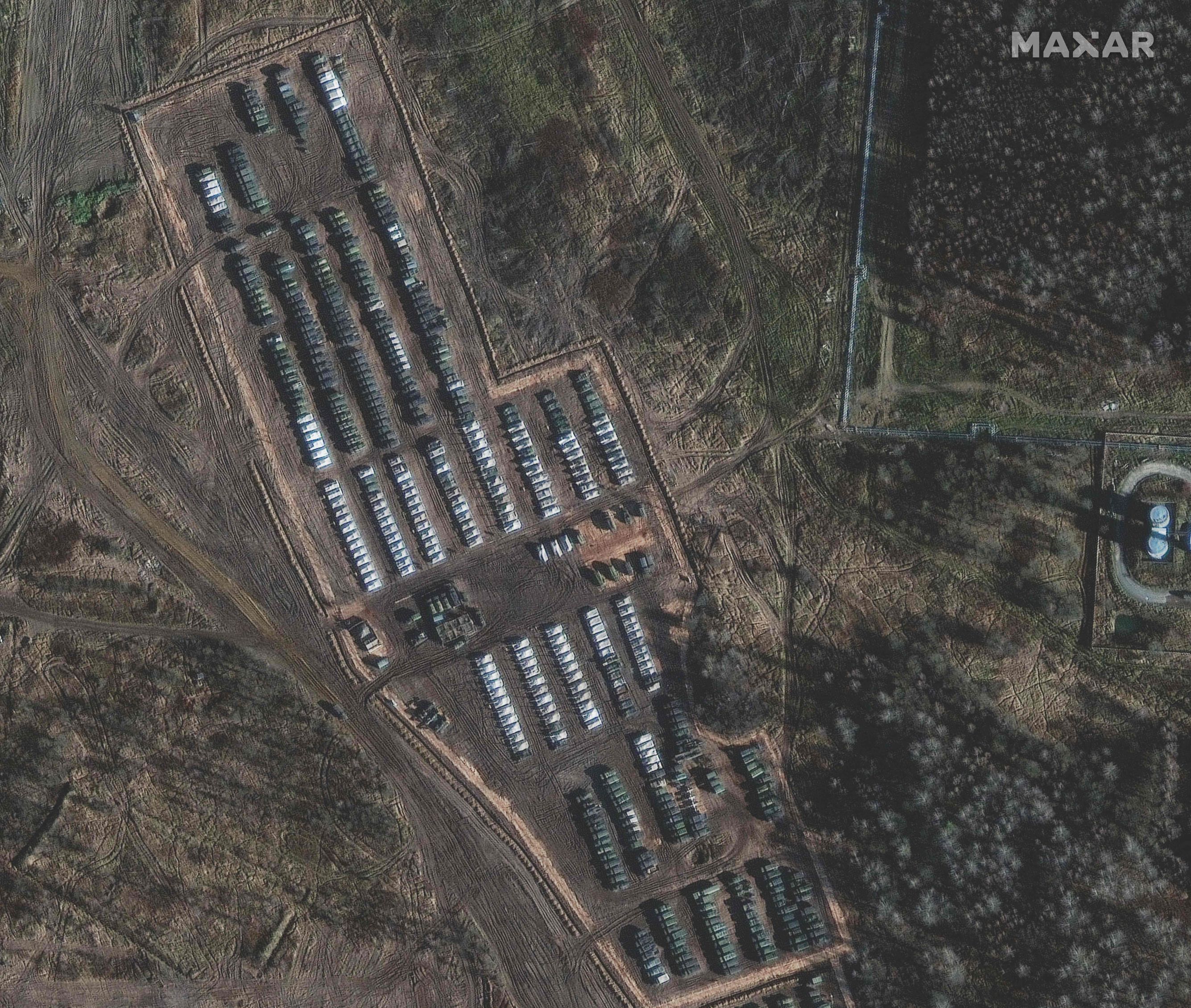 Издание опубликовало спутниковые снимки, сделанные в районе Ельни в Смоленской области — примерно в 100 километрах от границы с Беларусью и 250 километрах от границы с Украиной. На снимках, снятых 1 ноября, видны танки, бронетранспортеры, самоходные артиллерийские установки и сухопутные войска.