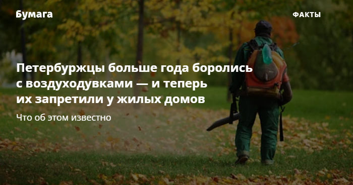 Петербуржцы больше года боролись с воздуходувками — и теперь их запретили у жилых домов. Что об этом известно