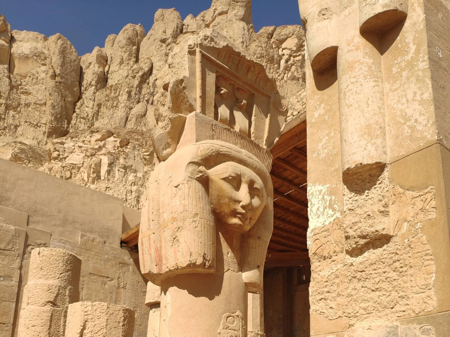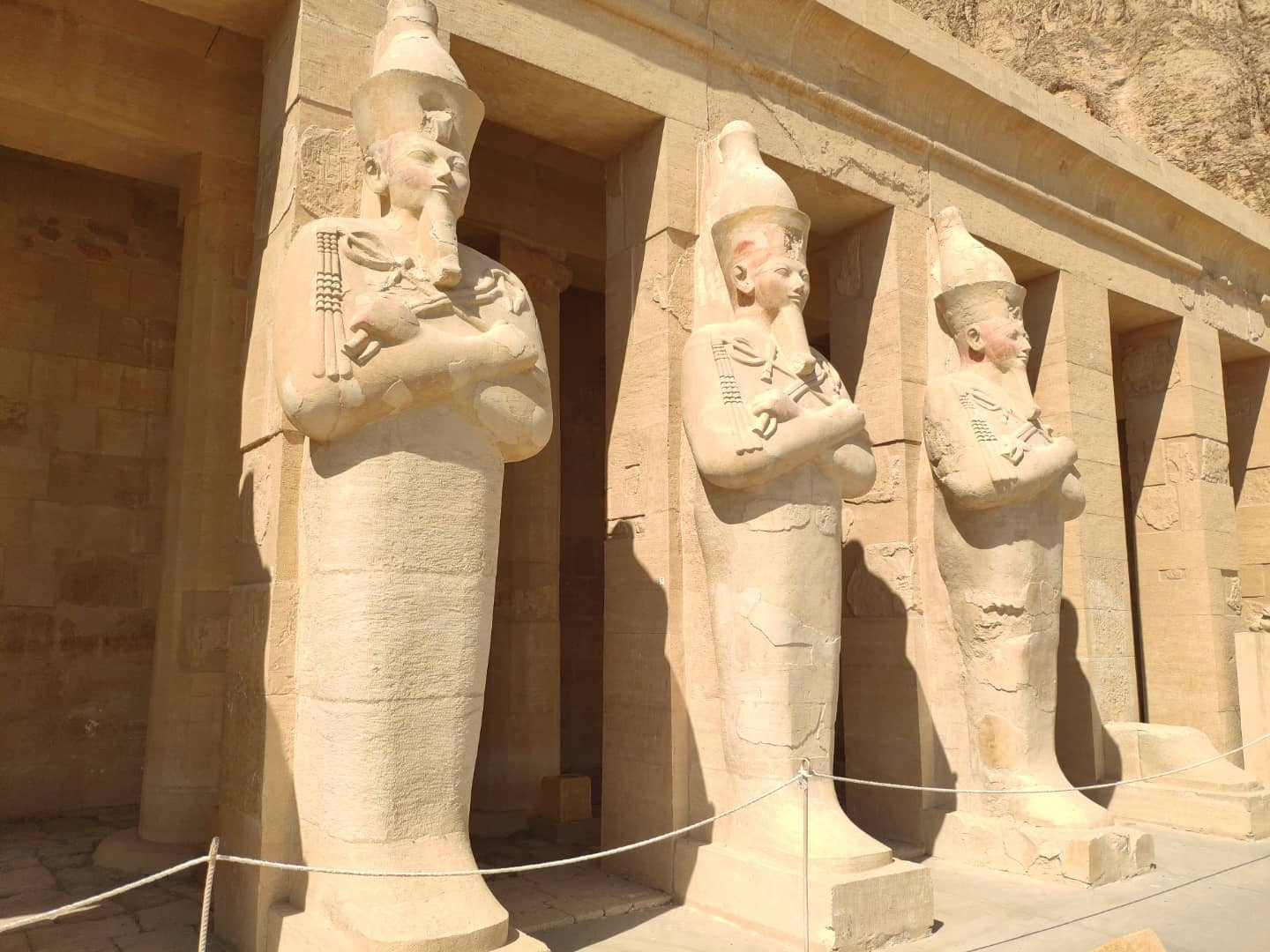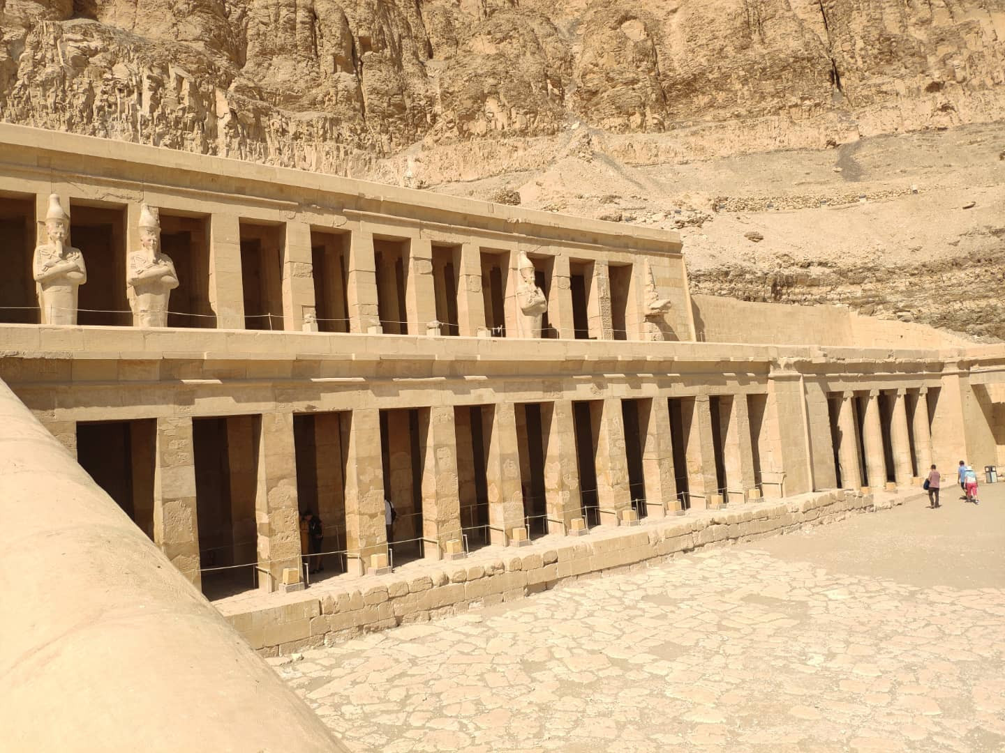 Продолжу про посещенный Луксор. Храм Хатшепсут по жаре сопоставим с долиной Царей (и находится в реальности с другой стороны того же холма). Заупокойный храм женщины-фараона Хатшепсут, сменившей на троне мужа и брата Тутмоса II (фактически правила и при нем). Наследовавший ей пасынок Тутмос III всю память о ней пытался уничтожить. Этого пасынка родила одна из побочных супруг Тутмоса II, не принадлежащая к царскому роду, которую звали Исет, или Исе.