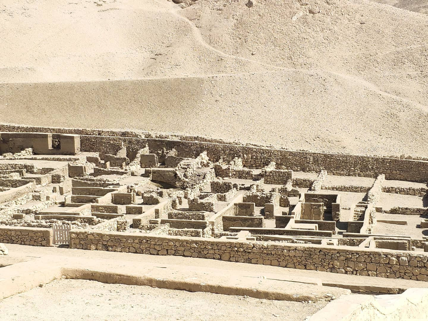 Продолжая про Луксор, западный берег. Долину Цариц мы проигнорировали (там фактически одна гробница, Нефертари, по космической цене), как и Долину знати. Зато в довершение к посещенному заехали в Долину ремесленников (Дейр-эль-Медина). Там жили работавшие над могилами в Долине Царей и Долине Цариц начиная с XVIII и кончая XX династией. Ее древнее название было Сет Маат - 'место правды', и ремесленников, живущих в поселении, называли "Служащими Правды". Впоследствии Птолемеи построили здесь небольшой храм богини Хатхор, который позднее был превращен христианами в церковь. Оттуда и название Дейр-эль-Медина (по-арабски 'монастырь города').
