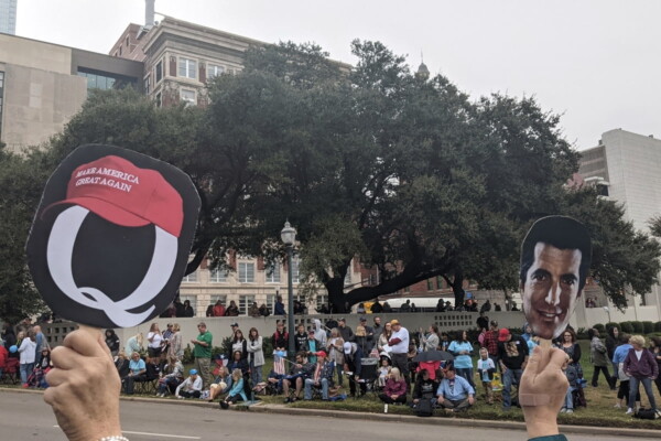 2 ноября несколько сотен последователей движения QAnon собрались в центре Далласа, на месте убийства Джона Ф. Кеннеди, в ожидании появления Кеннеди-младшего. Хотя сын 35-го президента США погиб в авиакатастрофе в 1999 году, сторонники конспирологической теории считают, что его смерть инсценирована — и спустя 22 года он должен раскрыть секрет.