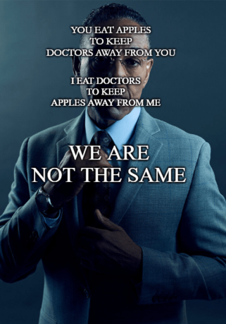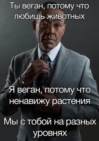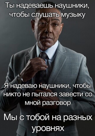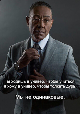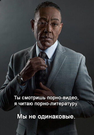 Осенью в соцсетях появились десятки мемов с Гусом Фрингом, антагонистом сериала «Во все тяжкие» в исполнении Джанкарло Эспозито. Иногда авторы заменяют его на Джокера, актёра Мадса Миккельсена в образе Ганнибала Лектера или других героев, но сохраняют общую идею: противопоставление персонажа вымышленному оппоненту фразой «Мы не одинаковые».