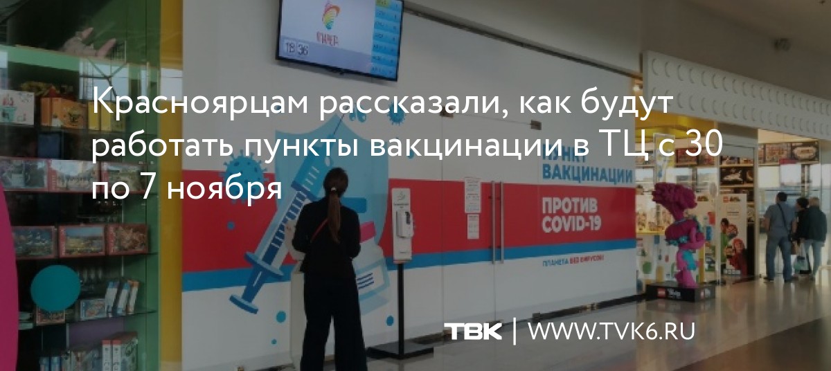 Пункты вакцинации в красноярских ТЦ меняют график работы с 30 по 7 ноября, сообщили власти. Медики также просят учитывать, что время ожидания увеличилось за счет большого количества желающих поставить прививку в ближайшие дни.