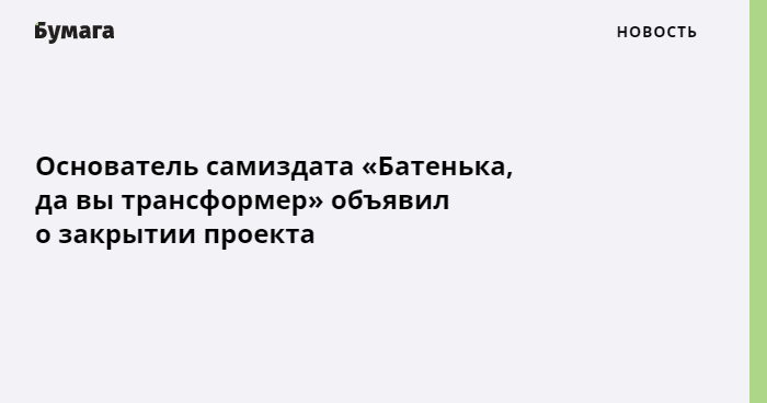 Самиздат «Батенька, да вы трансформер» завершит свою работу 31 декабря. Об этом объявил основатель проекта Егор Мостовщиков.