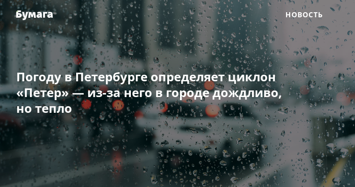 Погоду в Петербурге определяет циклон «Петер» — из-за него в городе дождливо, но тепло