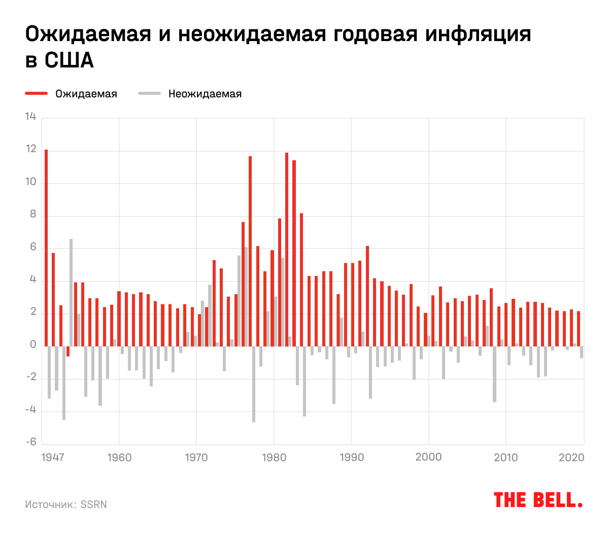 В своем исследовании они поделили инфляцию на ожидаемую и неожидаемую. Вот в чем разница: