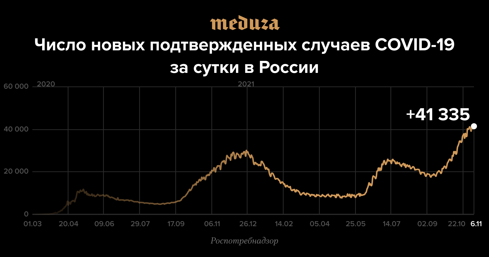 В России выявили рекордное число заболевших ковидом — 41 335 человек за сутки