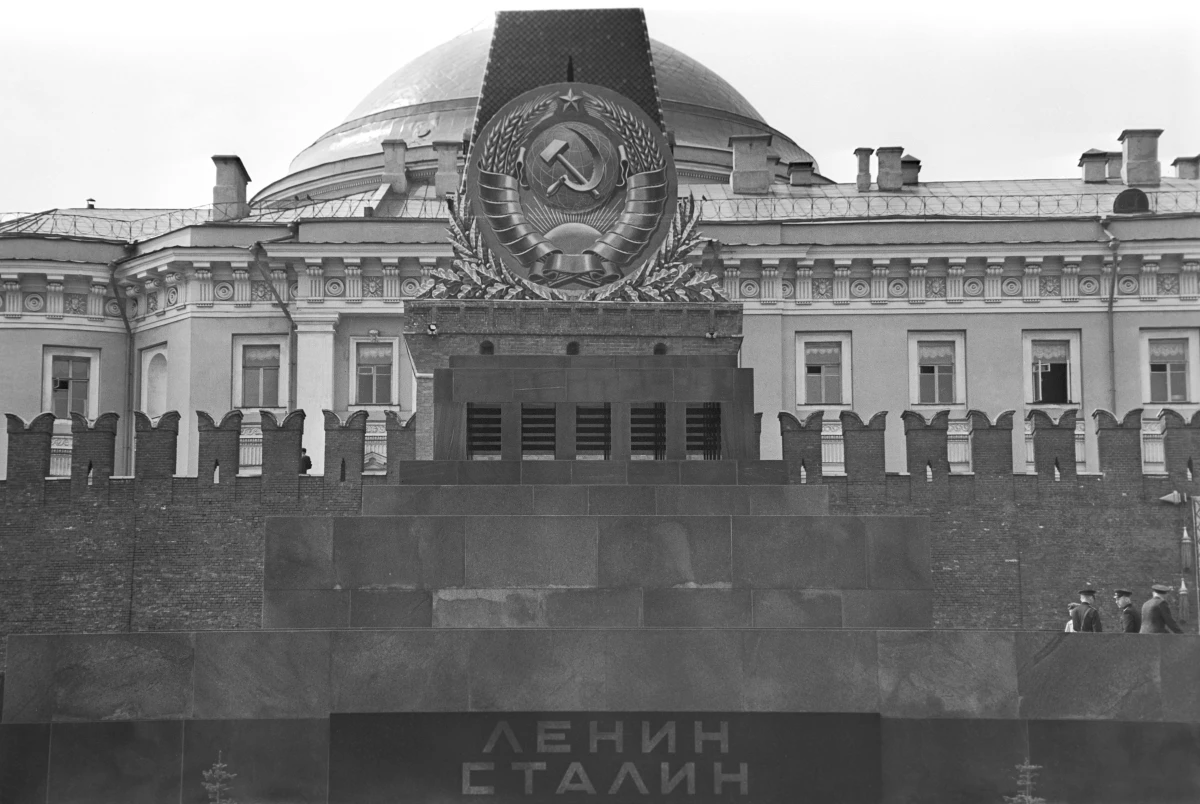 В мастерской Арсенала художник Савинов изготовил широкую белую ленту с буквами «ЛЕНИН». Ею надо было закрыть на Мавзолее надпись «Ленин — Сталин», пока не сделали постоянную надпись из мрамора.