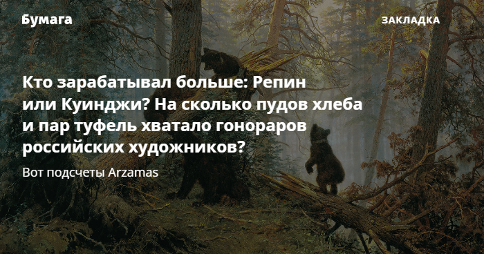 Кто зарабатывал больше: Репин или Куинджи? На сколько пудов хлеба и пар туфель хватало гонораров российских художников? Вот подсчеты Arzamas