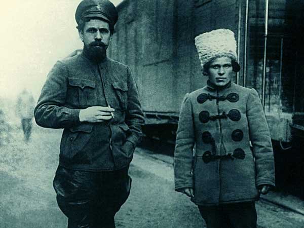 Нестор Иванович Махно (1888 – 1934) родился в селе Гуляйполе Александровского уезда Екатеринославской губернии в крестьянской семье. Долгое время датой его рождения считалось 27 октября 1889 года, лишь сравнительно недавно по метрической книге Крестовоздвиженской церкви села Гуляйполе было установлено, что он на год старше. Год рождения изменили родители, чтобы дольше не отдавать сына в армию. Подростком Нестор Махно нанимался подсобным рабочим к местным помещикам. Окончив церковно-приходскую школу, поступил на чугунолитейный завод Кернера. В 1906 году вступил в «Крестьянскую группу анархистов-коммунистов», принимал участие в «экспроприациях». Екатеринославская губерния в то время находилась на военном положении. 27 августа 1907 г. Махно и еще двух участников группы арестовали. Следствие длилось полтора года. Суд за «принадлежность к злонамеренной шайке, составившейся для учинения разбойных нападений» приговорил Нестора Махно к смертной казни, однако, так как по документам на момент преступления обвиняемый еще не был совершеннолетним, смертную казнь заменили вечной каторгой.