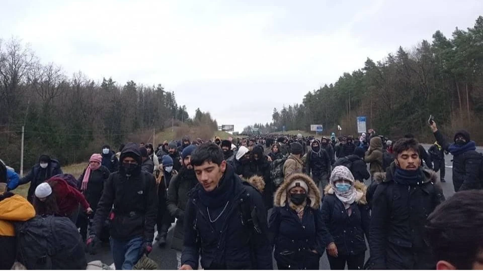 Утром 8 ноября возле пограничного пункта пропуска «Брузги-Кузница» на белорусско-польской границе очевидцы заметили большую колонну мигрантов с сумками и маленькими детьми. Большинство из них, по данным СМИ, — беженцы из Ирака и Сирии.
